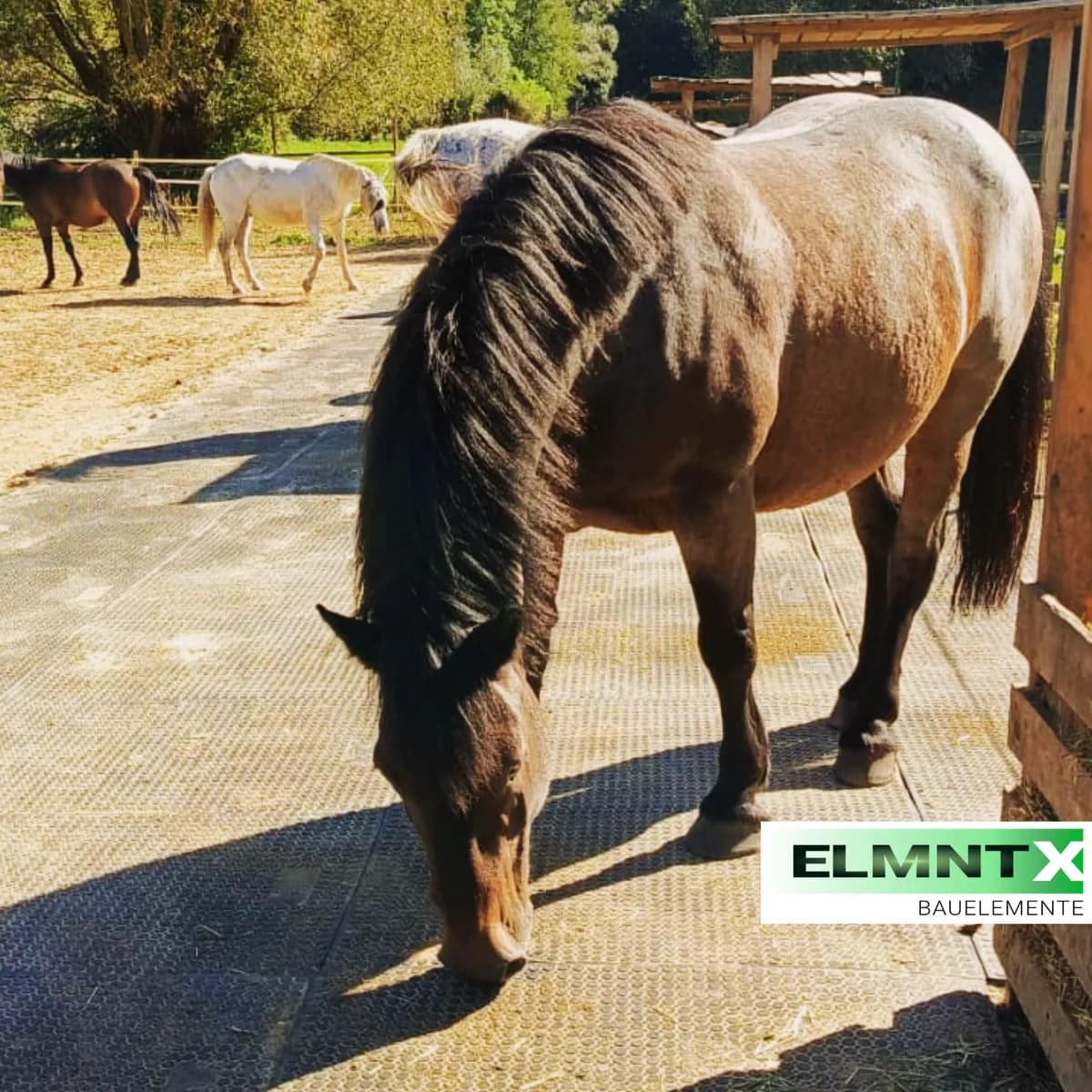 32 mm starke, extrem belastbare Schwerlastmatte aus Recycling-PVC für Paddocks, Offenställe, Waschplätze und Reitanlagen – 35 kg Eigengewicht, rutschhemmend, traktorbefahrbar.