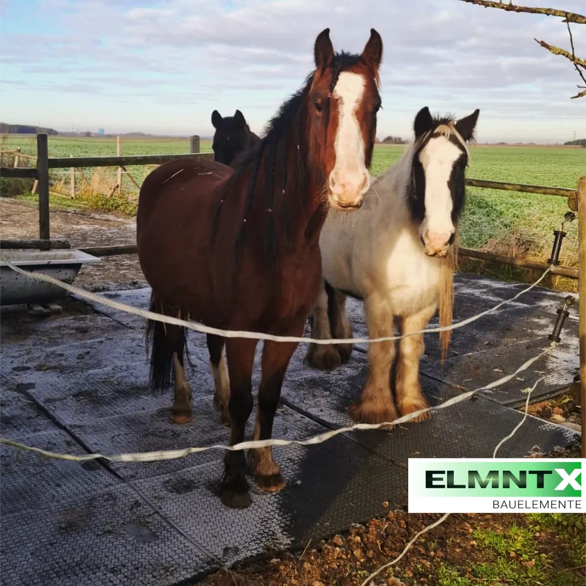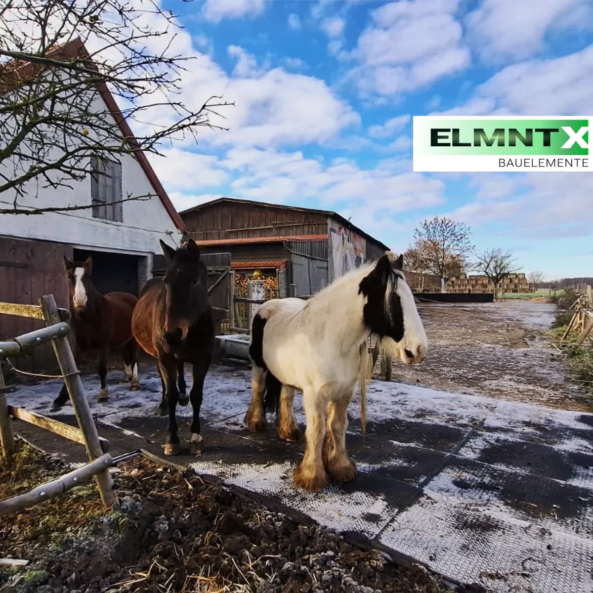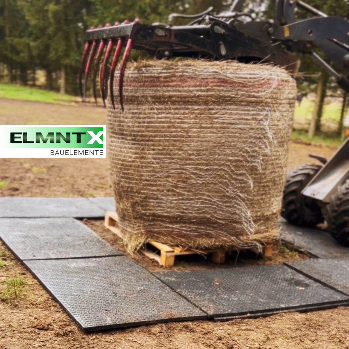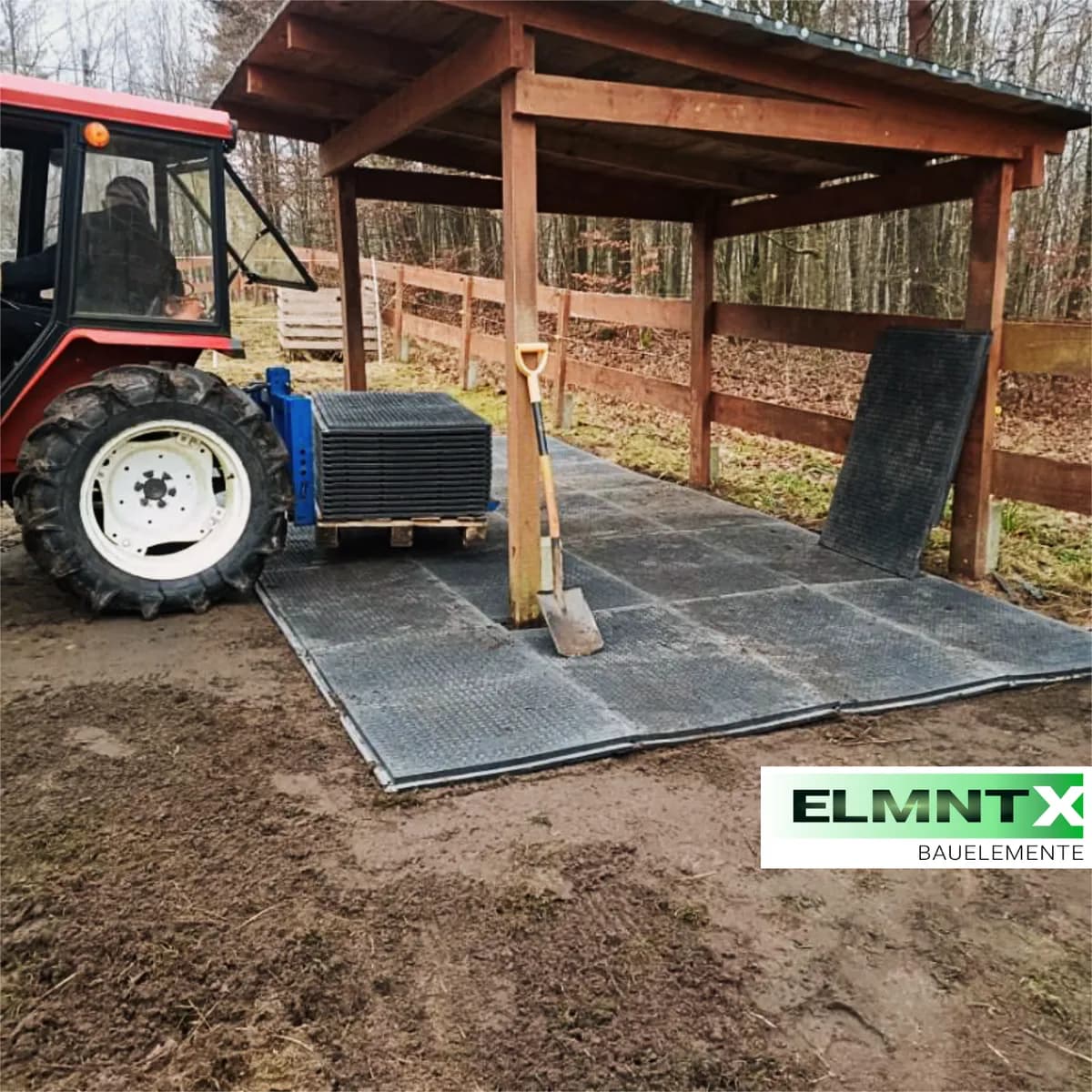 32 mm starke, extrem belastbare Schwerlastmatte aus Recycling-PVC für Paddocks, Offenställe, Waschplätze und Reitanlagen – 35 kg Eigengewicht, rutschhemmend, traktorbefahrbar.